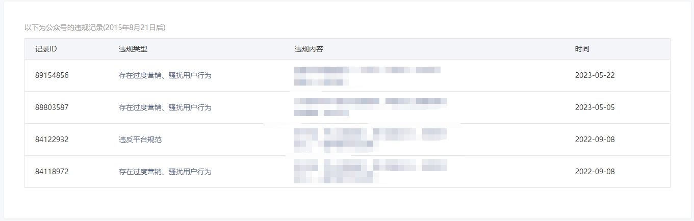 • 违规记录