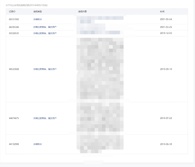 • 违规记录