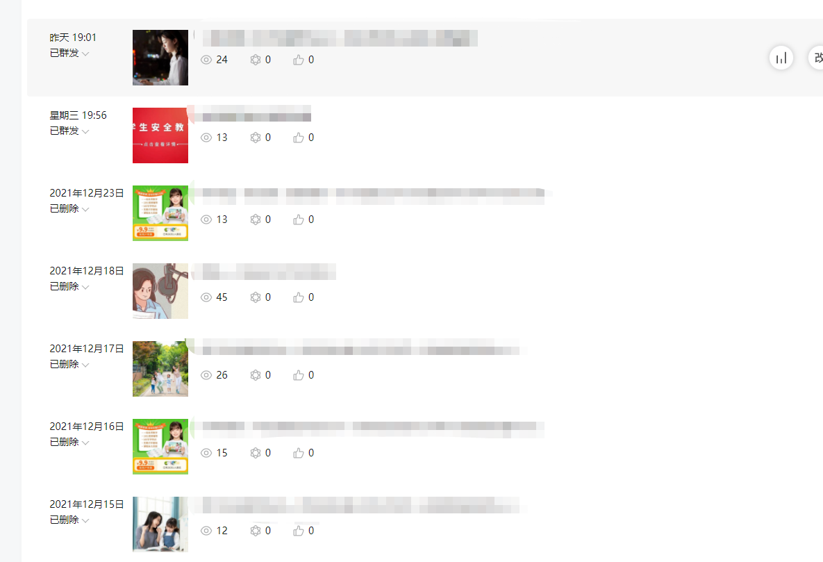 关于您提的这个问题,很多客户和我们平台反馈过这个问题。我们平台一般不会出现这种情况,因为每个公众号挂售时,平台审核客服都会与卖家再次确定,无误后才会挂售。同时每间隔7-15天左右,平台商务会再次与卖家沟通,确保公众号是否继续挂售,如此公众号已经卖出,或卖家联系不上,墨禾新媒将会直接下架此售卖信息。 之所以每周与卖家联系确认,一是为了确保此公众号是否还可以继续挂售,二是定期更新最新数据,方便买家随时查看。所以您在我们平台查看公众号,数据均为一周左右内更新的最新数据,如您需要更多数据,可与平台商务联系。