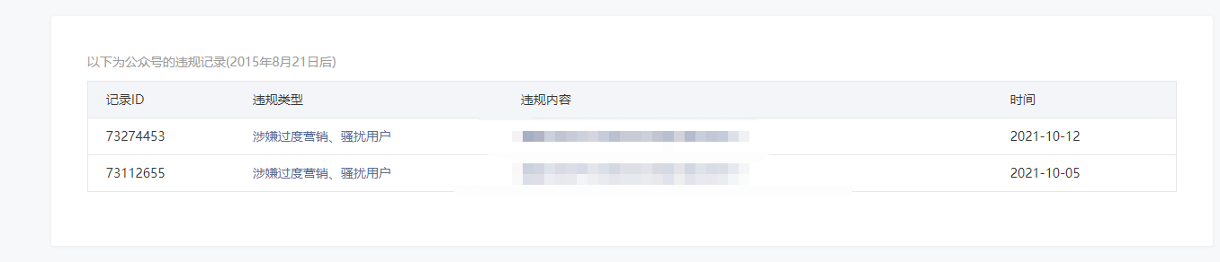 • 违规记录