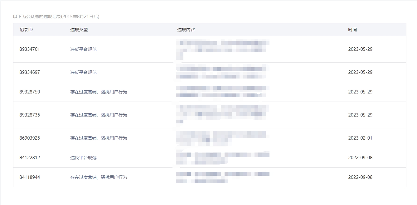 • 违规记录
