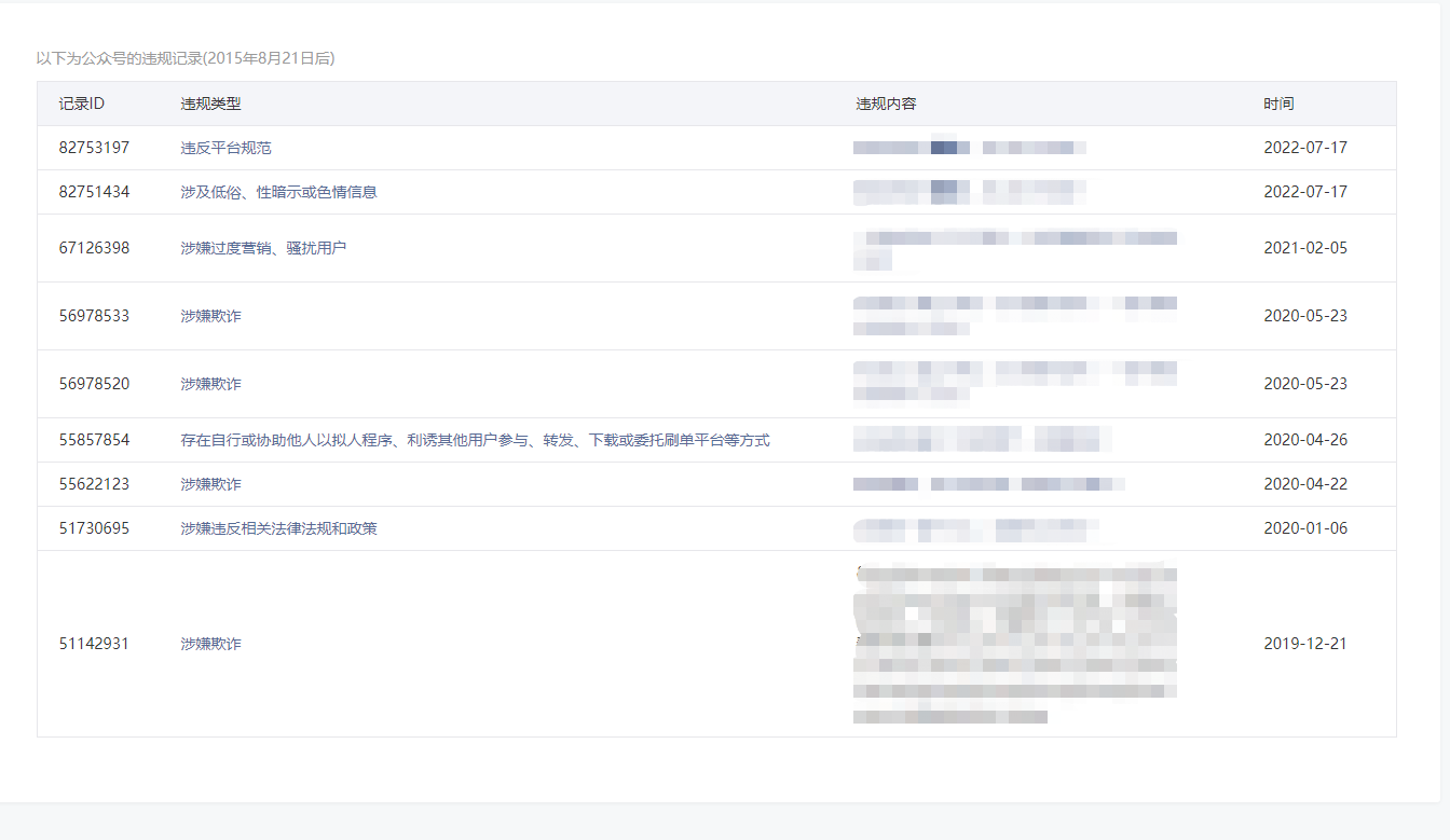 • 违规记录