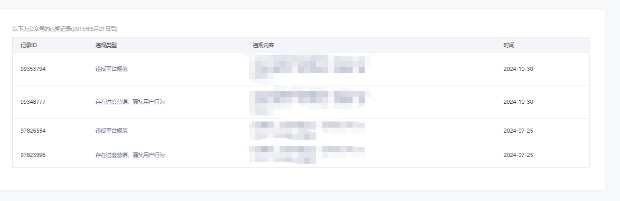• 违规记录