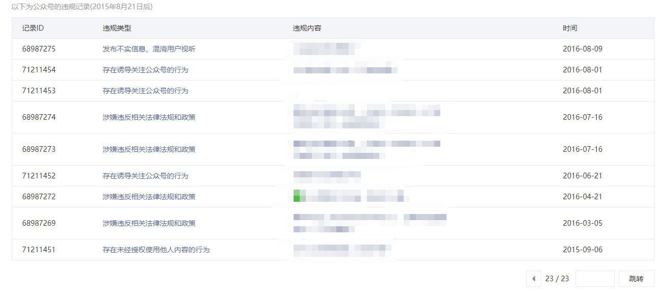 • 违规记录
