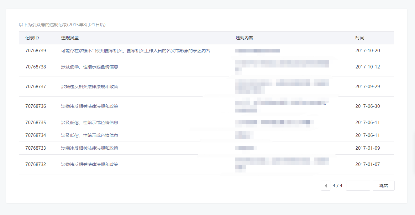 • 违规记录