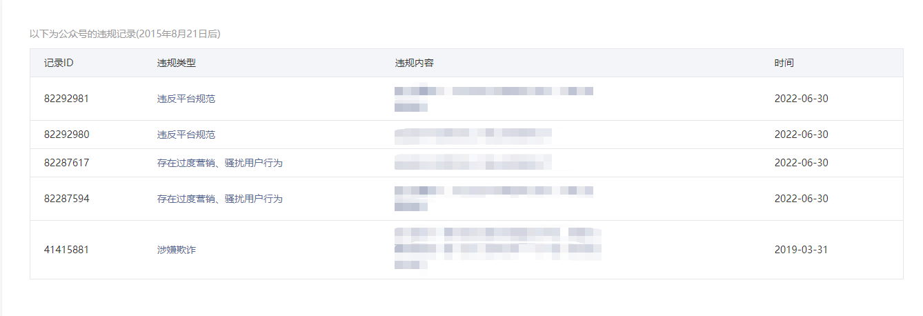 • 违规记录